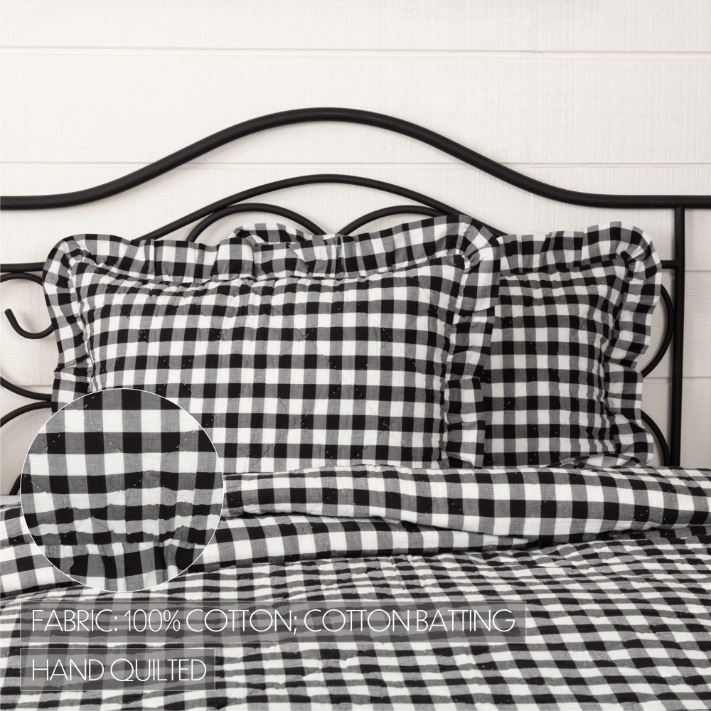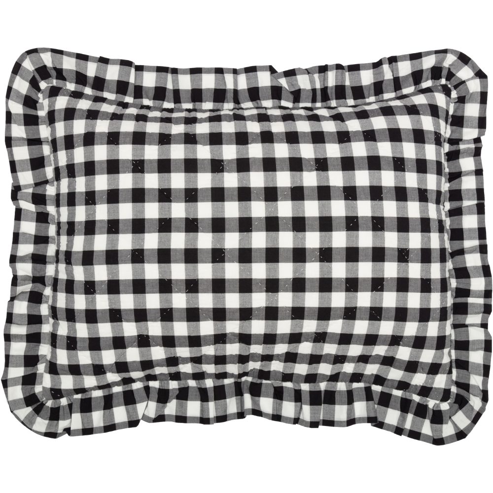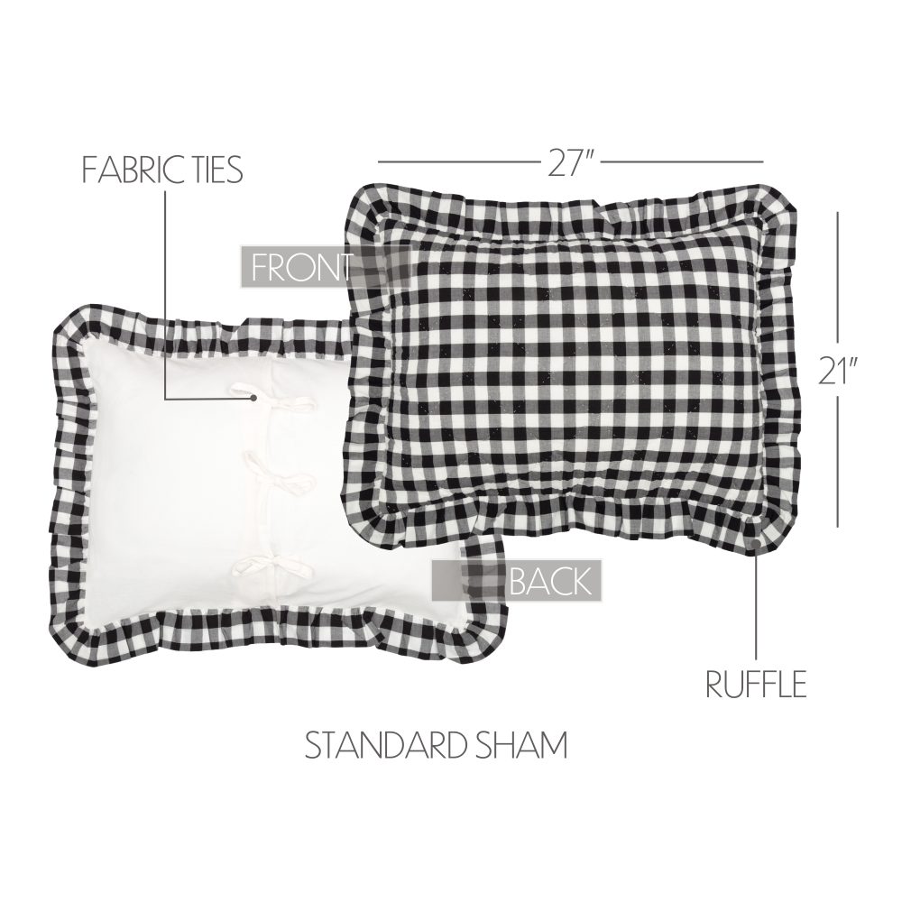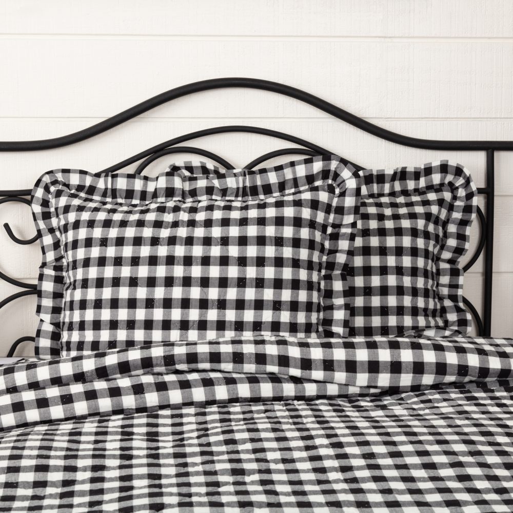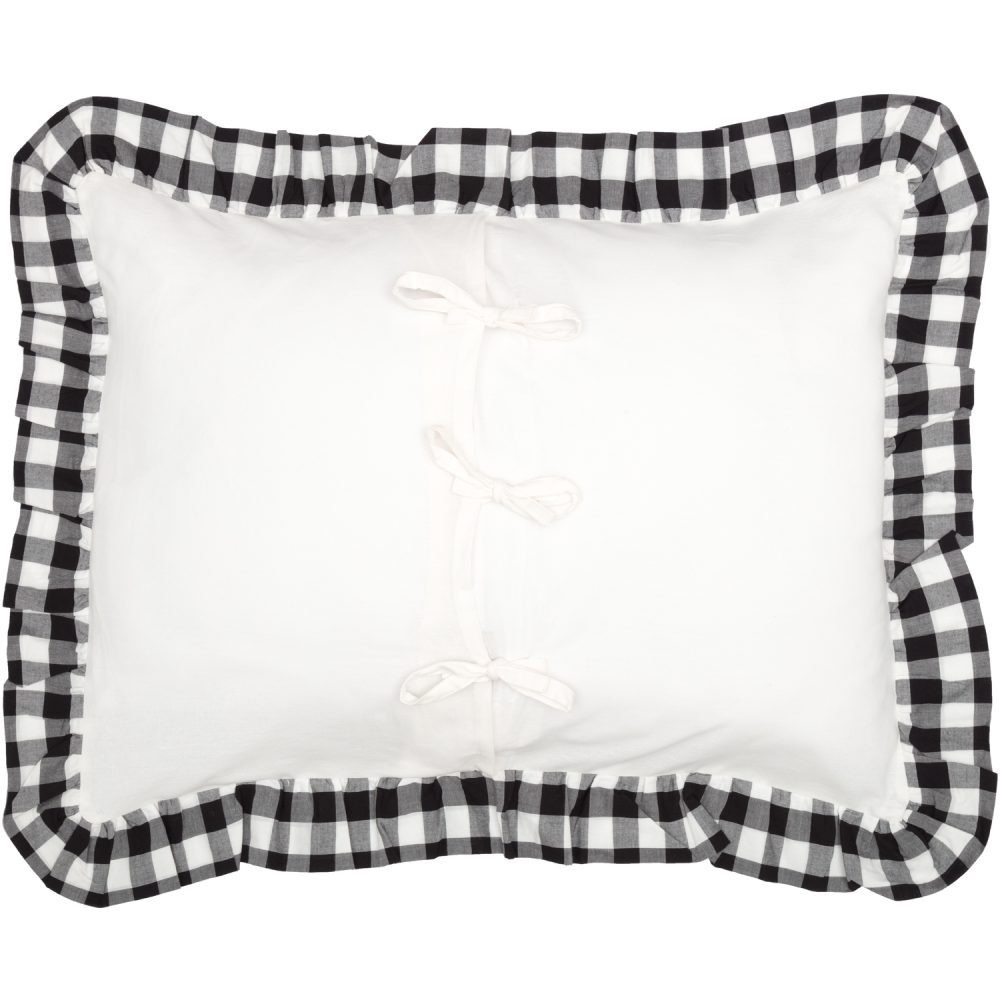 Accent your farmhouse bedroom with classic gingham patterns and soft ruffles for a big helping of country charm. The Annie Buffalo Black Check Standard Sham includes one 21x27 sham pillow cover. Ruffled pillow shams are a great way to add a finishing touch to farmhouse bedding for a perfectly cozy and put-together feel. This cotton pillow sham includes a three inch ruffle and a delightful large-scale buffalo check pattern in black and white. The decorative pillow case reverses to a soft white back with a tie closure to hold your fill pillow (not included) in securely. Machine washable and iron safe.