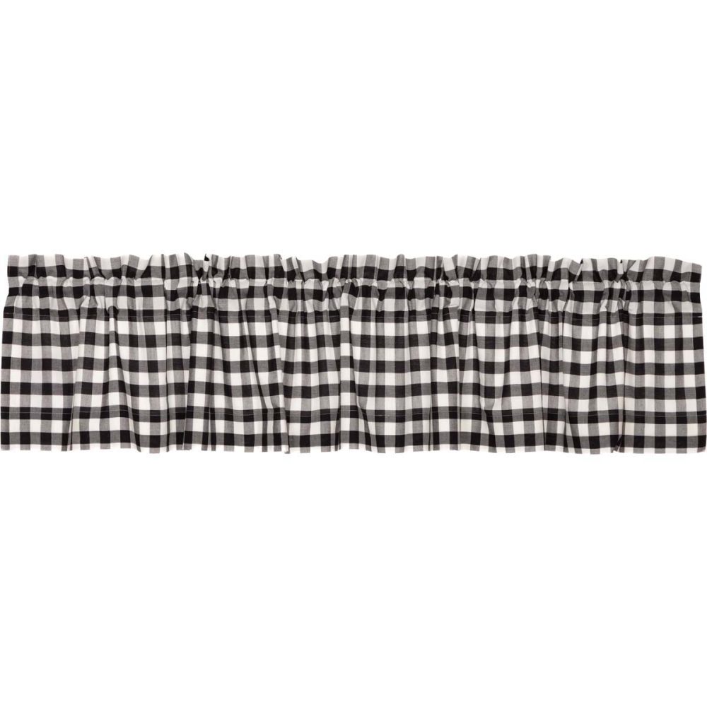 The Annie Buffalo Black Check Valance is a fresh and lighthearted piece tailored to complete the look of your laid back farmhouse decor. Black and antique white buffalo checks create a relaxed country feel in your home. Place this 16x90 curtain topper in the kitchen or on any window to enhance the style of a room. This 100% cotton valance has a white lining to keep away the sun's glare and has a rod pocket for simple hanging.