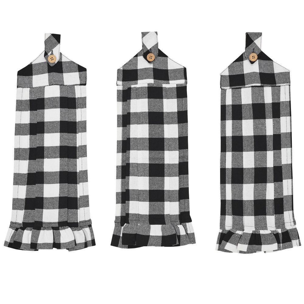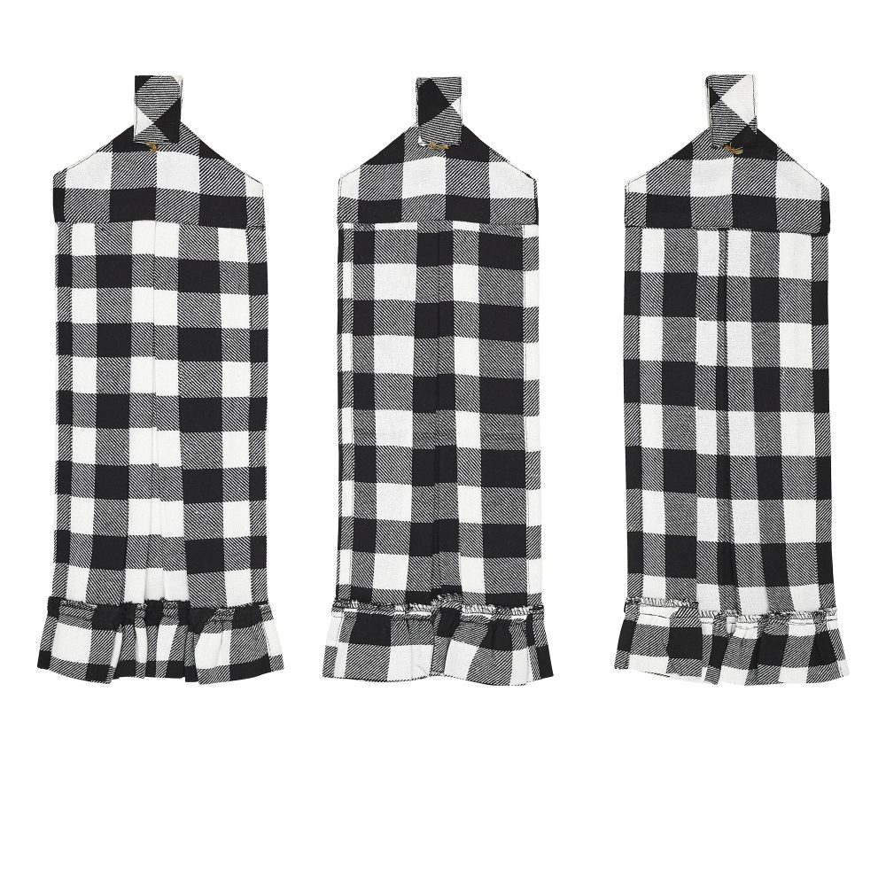 - Farmhouse Charm: The VHC Brands Cotton Annie Buffalo Check Black Button Loop Kitchen Towel Set of 3 adds a touch of Farmhouse charm to your home. With its pleated design and classic Buffalo Check pattern, it’s both stylish and practical.