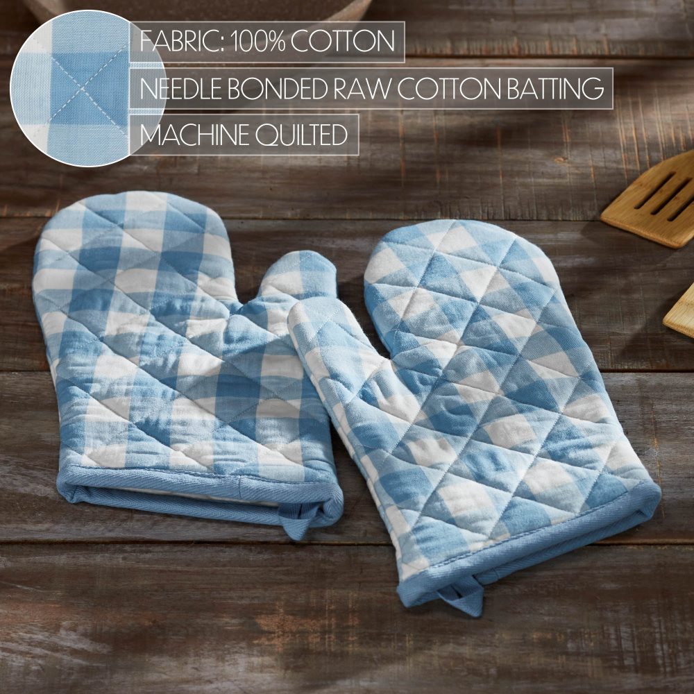 - Farmhouse-inspired style: Elevate your kitchen decor with the VHC Brands Cotton Oven Mitt Set of 2 from the Annie Buffalo Check Collection, featuring a charming dusk blue and buffalo check design that adds a touch of country farmhouse flair.