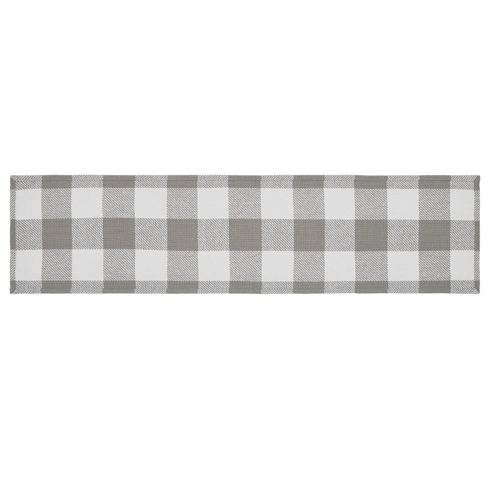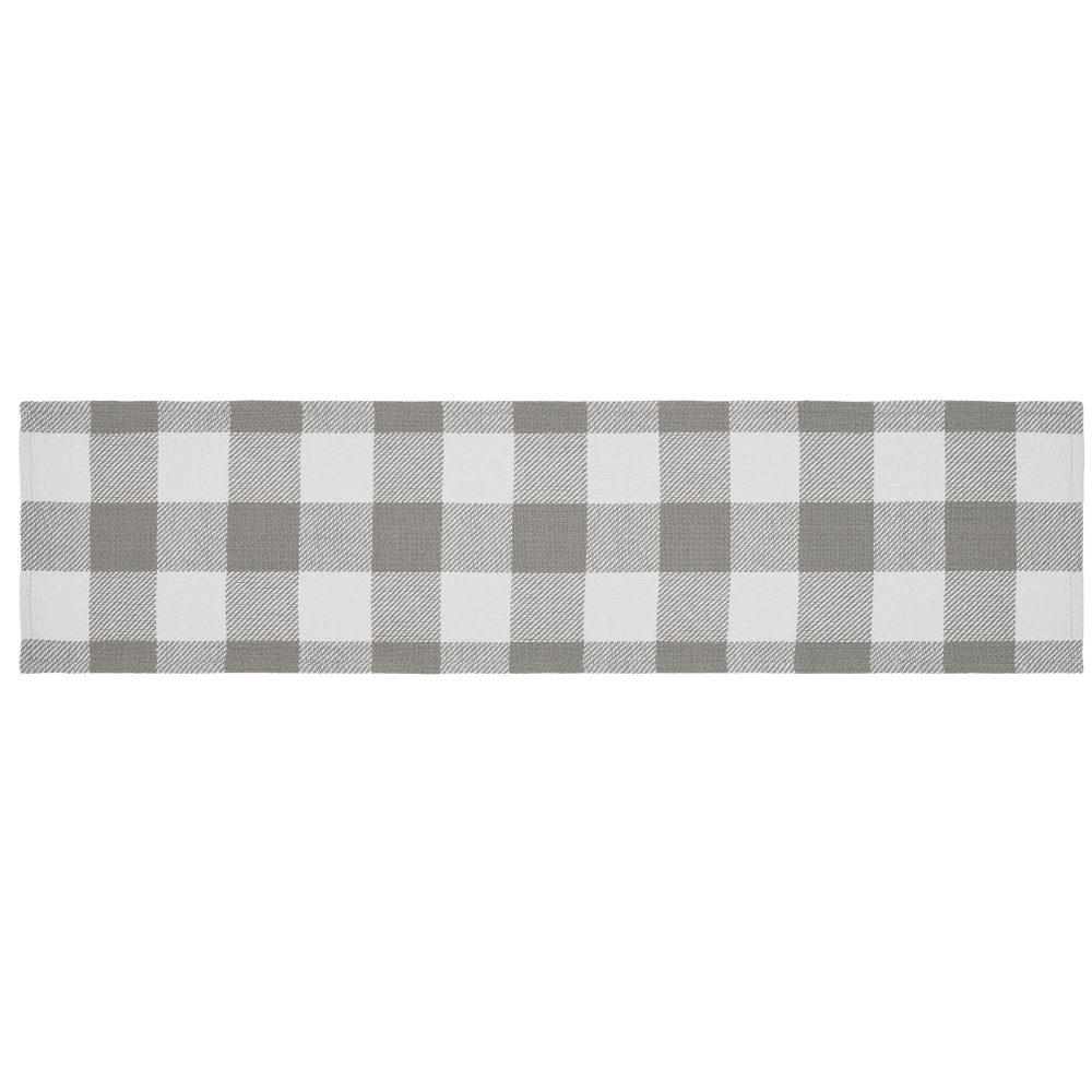 - Add a touch of Farmhouse charm to your dining room with this 12×48-inch Ash Grey table runner from the Annie Buffalo Check Collection.