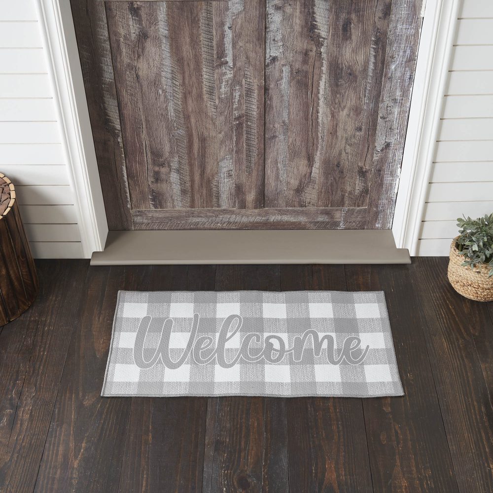 • Farmhouse Elegance: Enhance your decor with the VHC Brands Annie Buffalo Check Grey Welcome Rug, an inviting blend of Farmhouse charm and classic Country style.