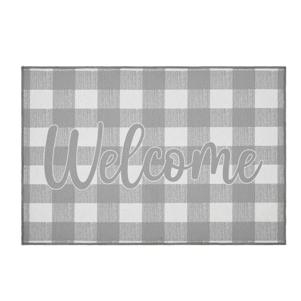 Annie Buffalo Check Grey Welcome Polyester Rug Rect 24×36