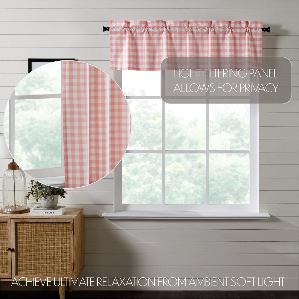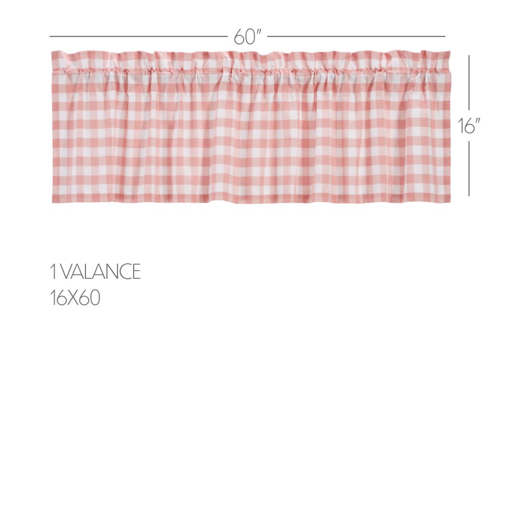 Create a clean, modern farmhouse look with our Annie Buffalo Coral Check Valance. The charming 16x60 inch valance features coral and white checkered plaid in a textured, woven fabric made with 100% cotton. The straight-edged curtain creates a perfect modern farmhouse look. Rod pockets are included for easy hanging.
