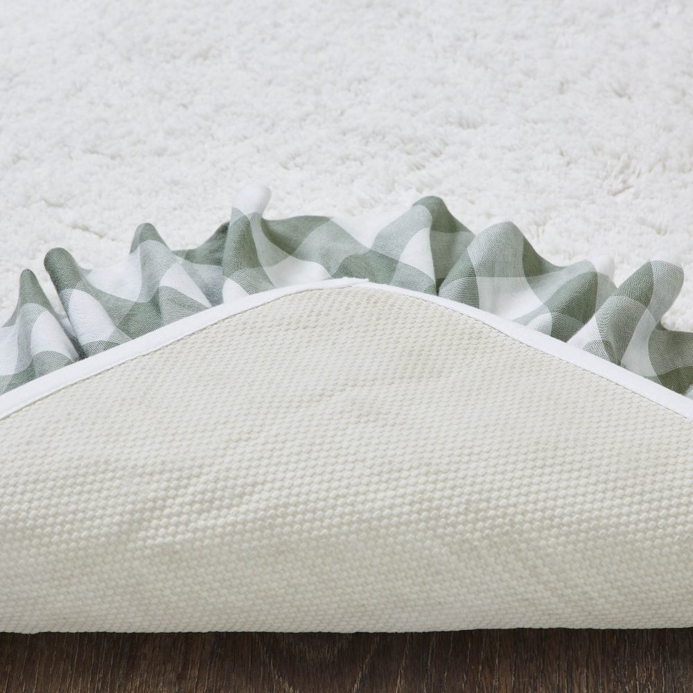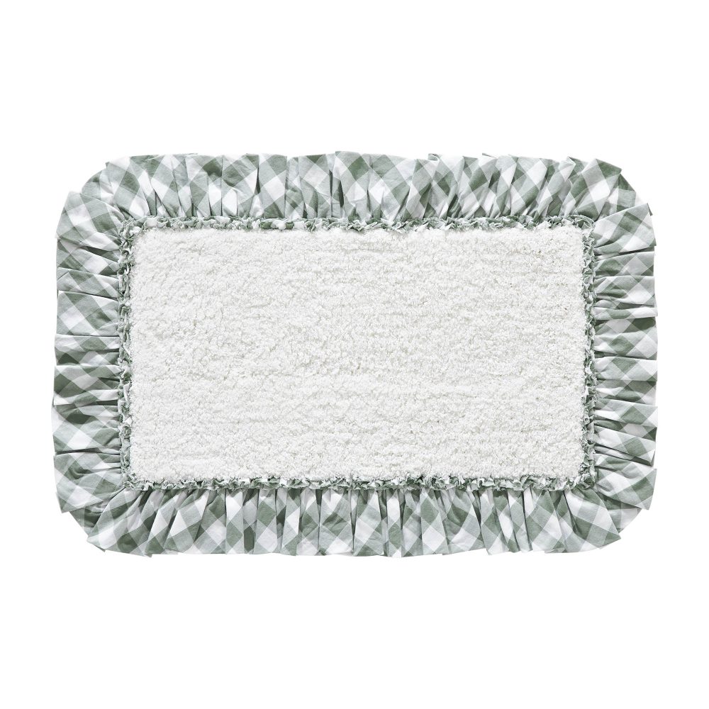 Step out of the shower and into cozy country farmhouse bliss. The Annie Buffalo Check Green Bath Mat 20x30 features a solid white core in premium, ultra absorbent cotton. It is trimmed with a ruffled checked fabric in sage green and white. Backed with textured rubber to produce a quality, non-slip surface without the need for a separate rug pad. This ruffled bath mat is a great finishing piece for bathrooms or laundry rooms where you need the perfect balance of style and functionality.