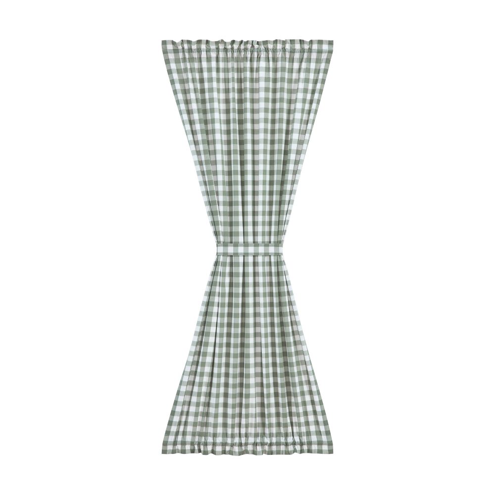 A cheerful, checked plaid in sage green and soft white provides delightful vintage style and practical benefits. The Annie Buffalo Green Check Door Panel is a 72x40 inch panel crafted in 100 percent cotton with a light filtering lining for additional privacy. This country farmhouse French door panel features a 2 inch rod pocket for easy installation (rod not included). Machine wash on gentle for easy care and line dry for best results. The panel is iron safe. To give your home a complete modern farmhouse look, pair with other items from the Annie Buffalo Collection including modern primitive swag, panel sets, kitchen accessories, bedding and more.