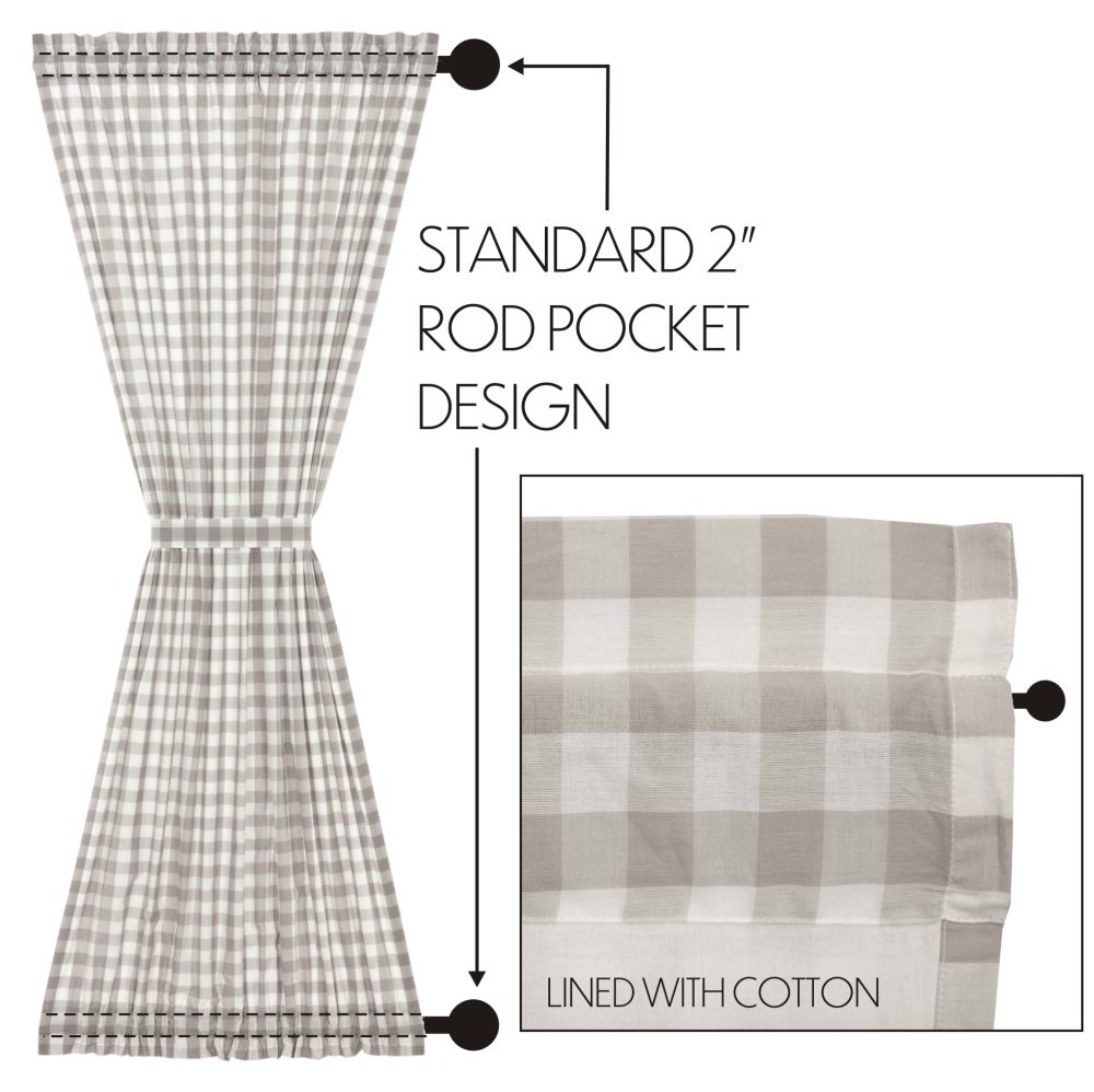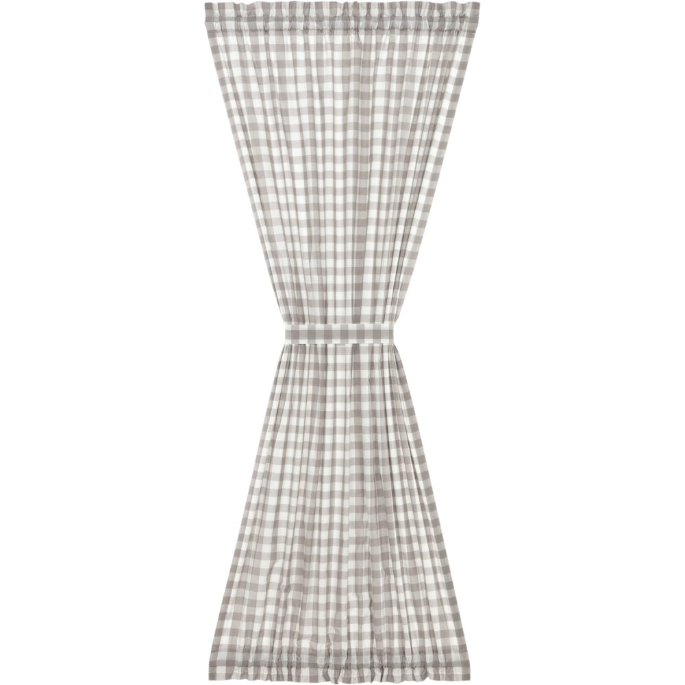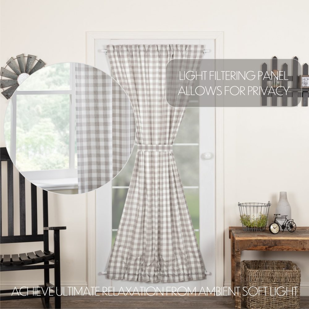 Decorate your windows with a touch of farmhouse style with this classic door panel. Displaying timeless country design with large-scale grey and white checks, the Annie Buffalo Grey Check Door Panel 72x40 adds privacy to door windows while enhancing the style of your room. This 100% cotton curtain has a white lining to prevent fading and provide additional privacy. It includes two rod pockets for easy hanging and a matching tieback with a button to wrap around the center for additional styling options.