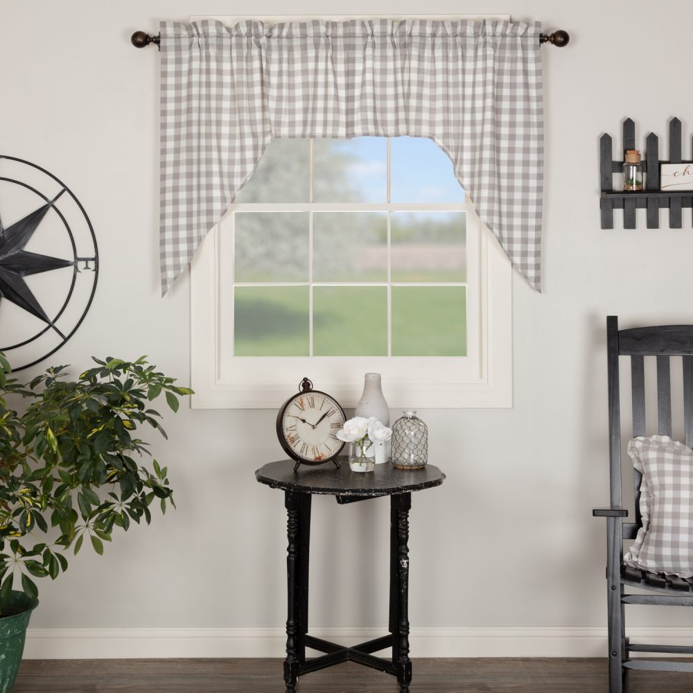 • BUFFALO CHECK SWAG: Includes two 36 by 36 by 16 inch swag panels. Swag curtains are a classic country style featuring angled drapes to frame your window while leaving a triangular space open for additional natural light. Our swag curtains include a rod pocket and loops for easy hanging, styled for modern farmhouse charm.