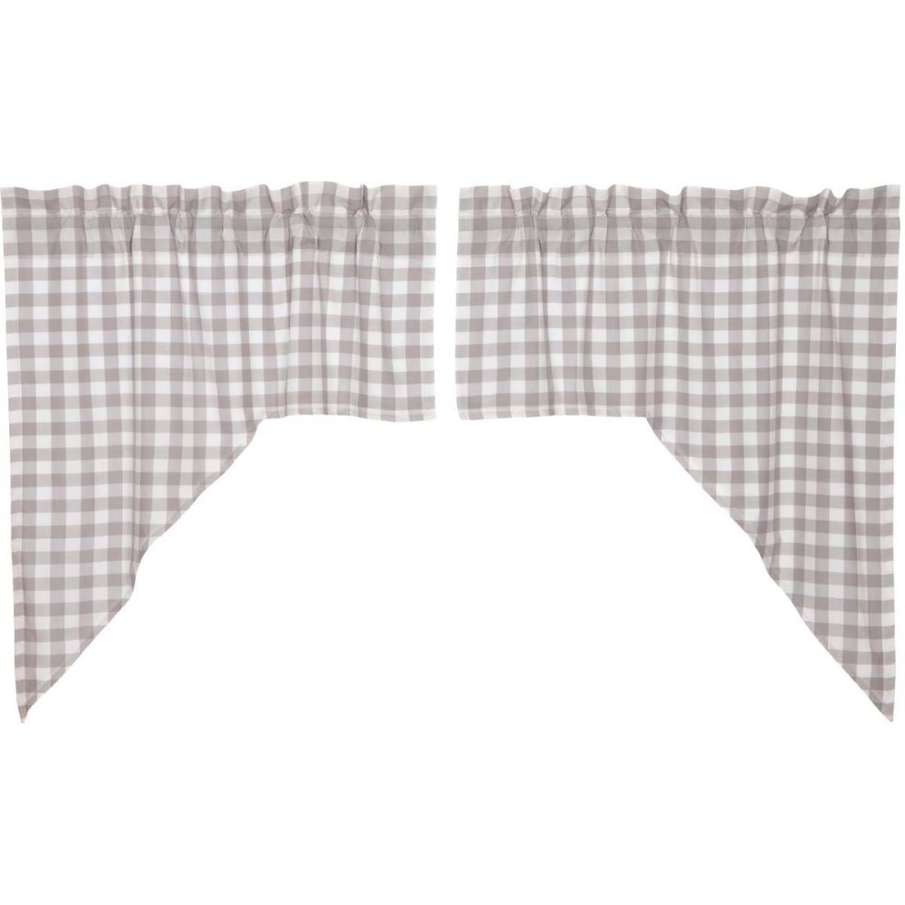 The Annie Buffalo Black Check Swag Set adds charming, country style to your home. Swag curtains are a classic country style featuring angled drapes to frame your window while leaving a triangular space open for additional natural light. Our curtains feature a casual light grey and white buffalo check pattern for modern farmhouse charm. Includes a rod pocket and loops for easy hanging.
