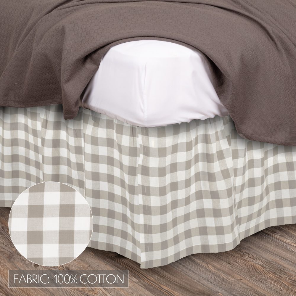 Practical and stylish, bedskirts add a perfect finishing touch to your bedding while covering bed posts, under-bed storage and preventing accumulation of dust in hard-to-clean spaces. The Annie Buffalo Grey Check Twin Bedskirt is a casual decor staple with country-favorite buffalo plaid and classic grey and antique white coloring for crisp farmhouse charm. The 39x76-inch bed ruffle features a generous 16-inch drop to ensure that the fabric reaches your floor for a neat, put-together look. VHC bedskirts are also designed with split corners and slight ruffling for less fuss and a great fit every time. Made of 100 percent cotton. Coordinates with the Annie Buffalo Check Collection by VHC for a complete modern farmhouse look for your bedroom. Machine washable and iron safe.