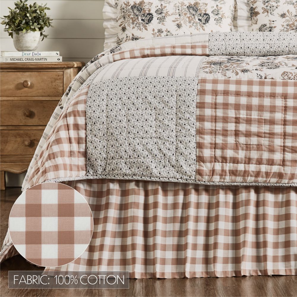 Practical and stylish, bedskirts add a perfect finishing touch to your bedding while covering bed posts, under-bed storage and preventing accumulation of dust in hard-to-clean spaces. The Annie Buffalo Portabella Check King Bedskirt is a casual decor staple with country-favorite buffalo plaid and classic portabella brown and antique white coloring for crisp farmhouse charm. The 78x80-inch bed ruffle features a generous 16-inch drop to ensure that the fabric reaches your floor for a neat, put-together look. VHC bedskirts are also designed with split corners and slight ruffling for less fuss and a great fit every time. Made of 100 percent cotton. Coordinates with the Annie Buffalo Check Collection by VHC for a complete modern farmhouse look for your bedroom. Machine washable and iron safe.