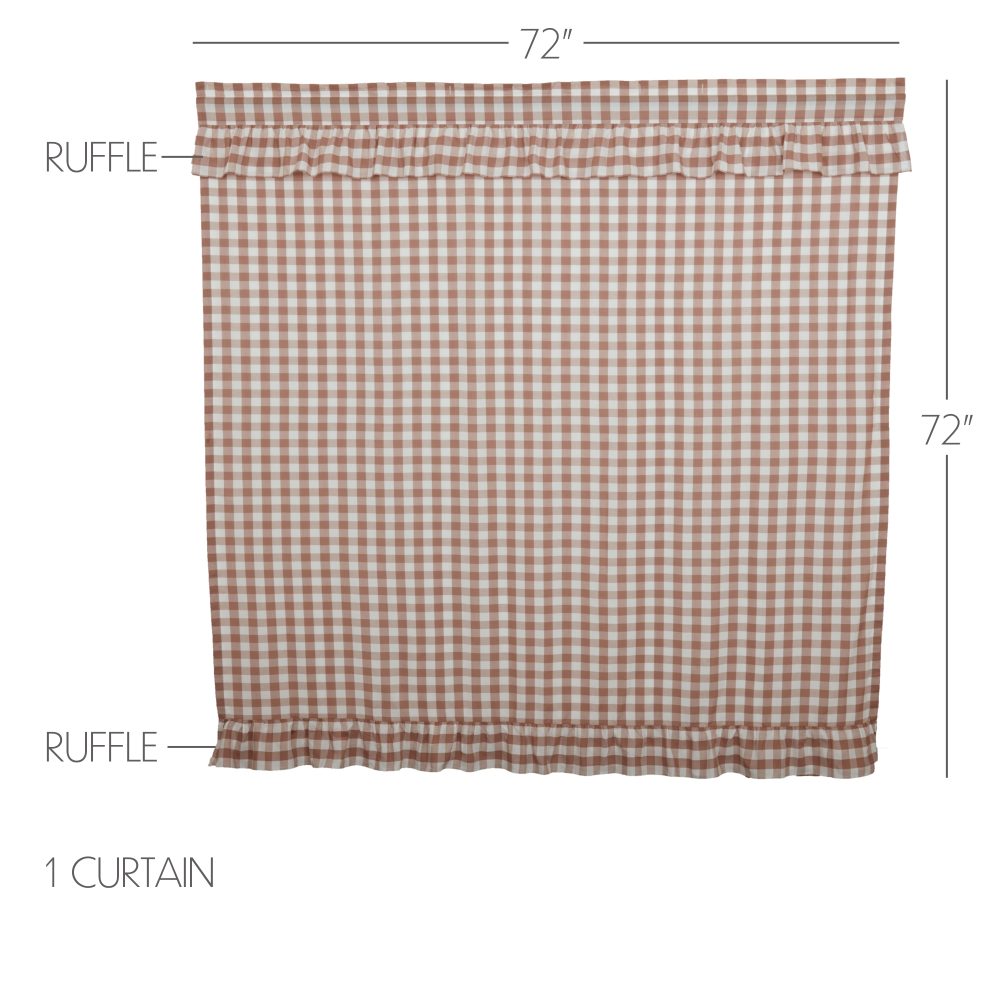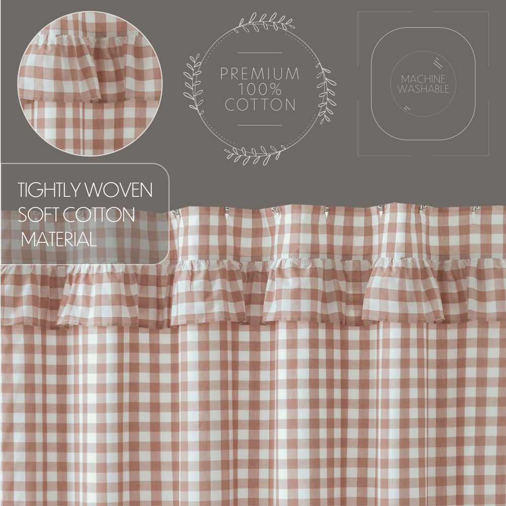 Decorate your bathroom with the perfect blend of simplicity and country charm with the Annie Buffalo Portabella Check Ruffled Shower Curtain. Featuring large scale tan and white checks beautifully accented with ruffles, our 72x72 fabric shower curtain provides a vintage, farmhouse touch to your decor. This machine washable, 100% cotton shower curtain includes button holes for shower hooks and a rod pocket for versatility and convenience.