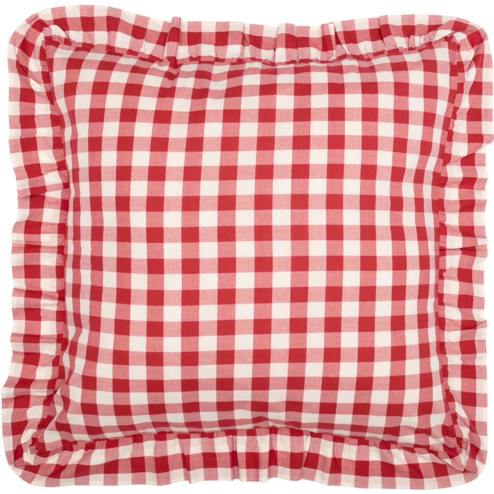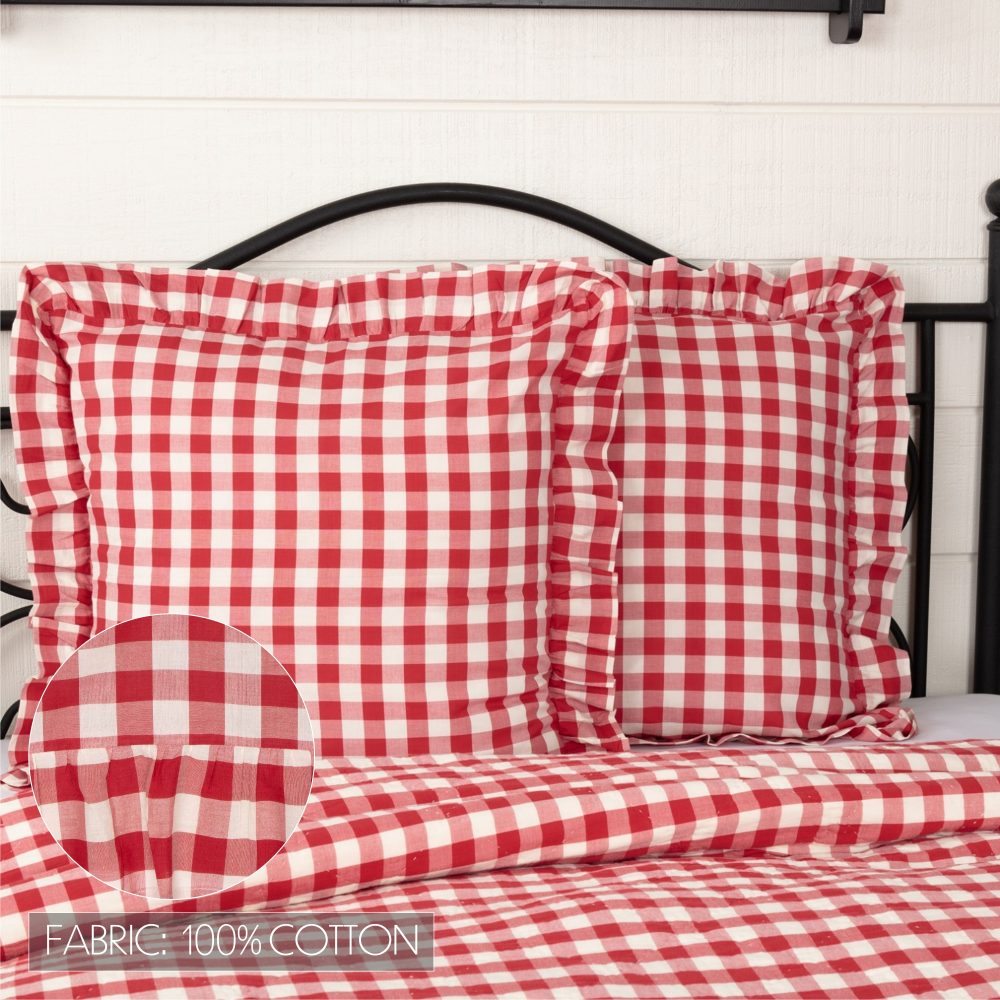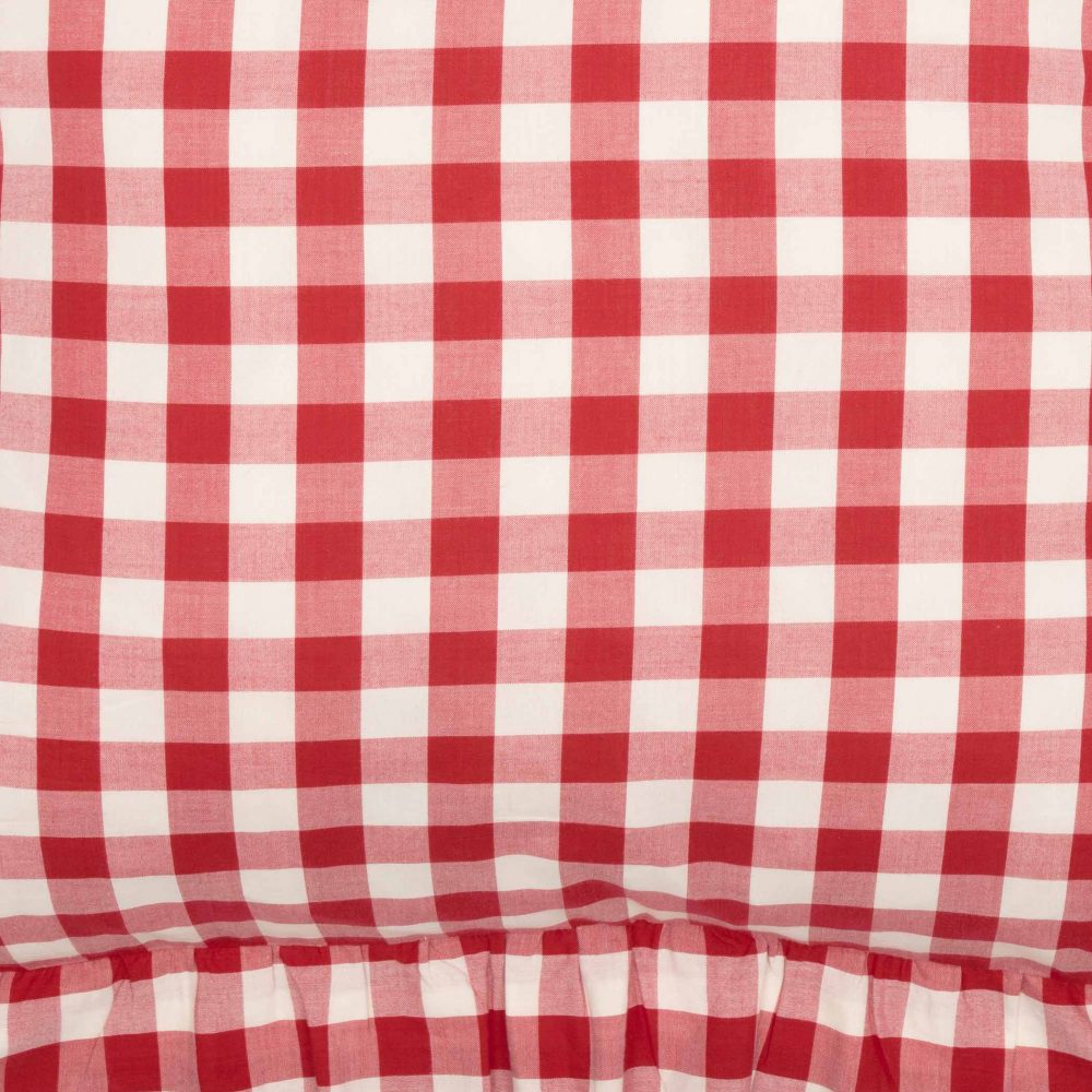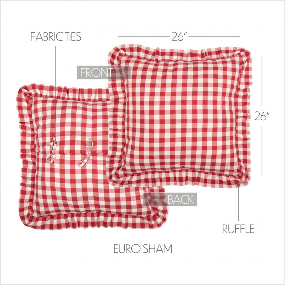 Accent your farmhouse bedroom with classic gingham patterns and soft ruffles for a big helping of country charm. The Annie Buffalo Red Check Euro Sham includes one 26x26 euro sham pillow cover. European pillow shams are a great way to add a finishing touch to farmhouse bedding for a perfectly cozy and put-together feel. This cotton pillow sham includes a three inch ruffle and a delightful large-scale buffalo check pattern in red and white. The decorative pillow case includes the same fabric on both the front and back with a tie closure to hold your fill pillow (not included) in securely. Machine washable and iron safe.