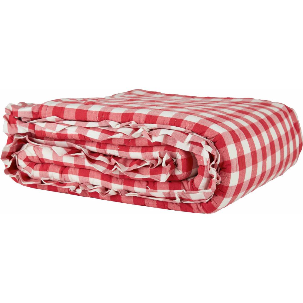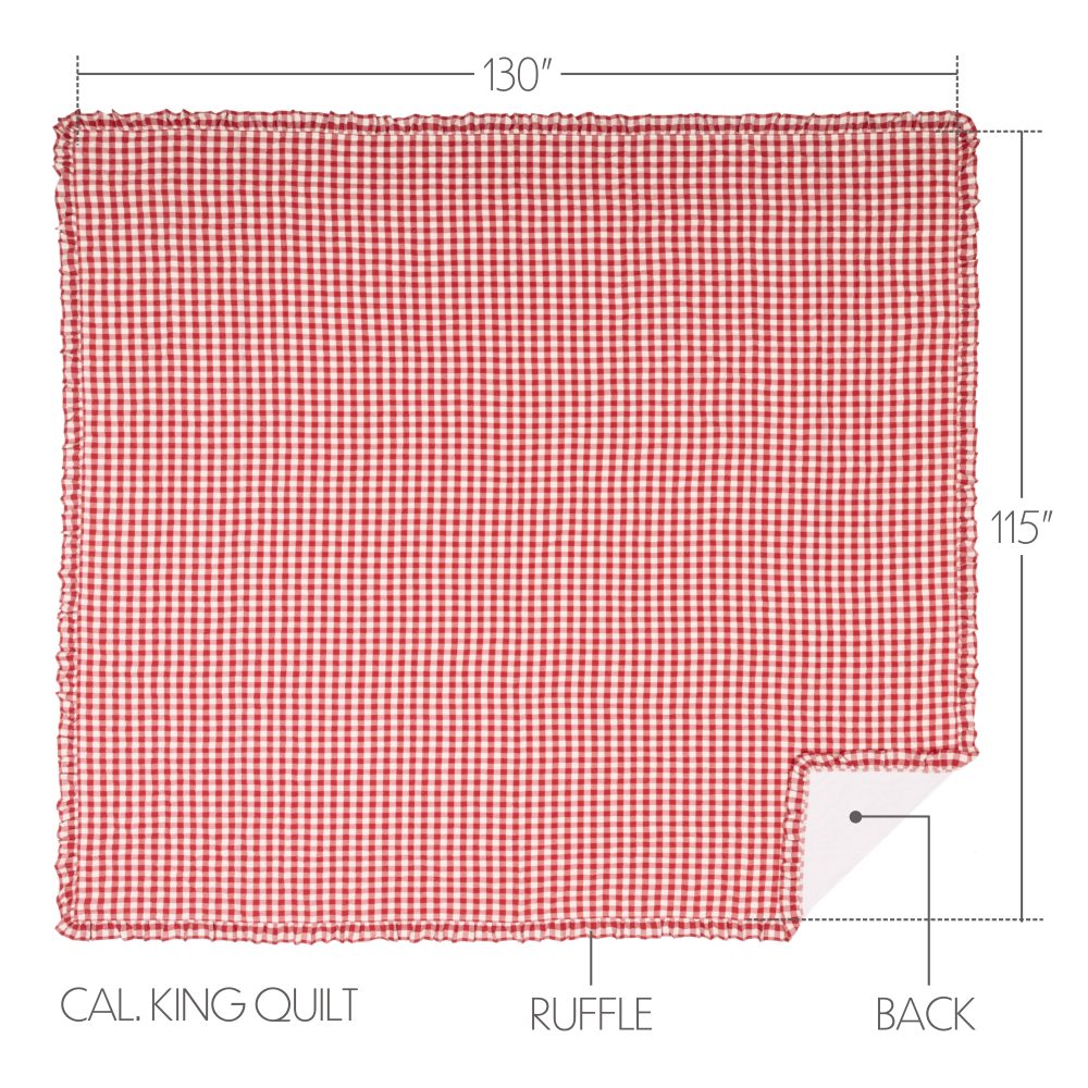 Feel right at home in cozy, country comfort with the Annie Buffalo Red Check Ruffled California King Quilt Coverlet. Patterned with red and antique white buffalo checks and trimmed with gathered ruffles, our 130Wx115L quilt is created using exquisite cotton and quality diamond stitching. This elegant farmhouse quilt brings lighthearted, sophistication to your bedroom decor and reverses to a soft white. Our quilt is prewashed for your convenience, and both machine washable and iron-safe.