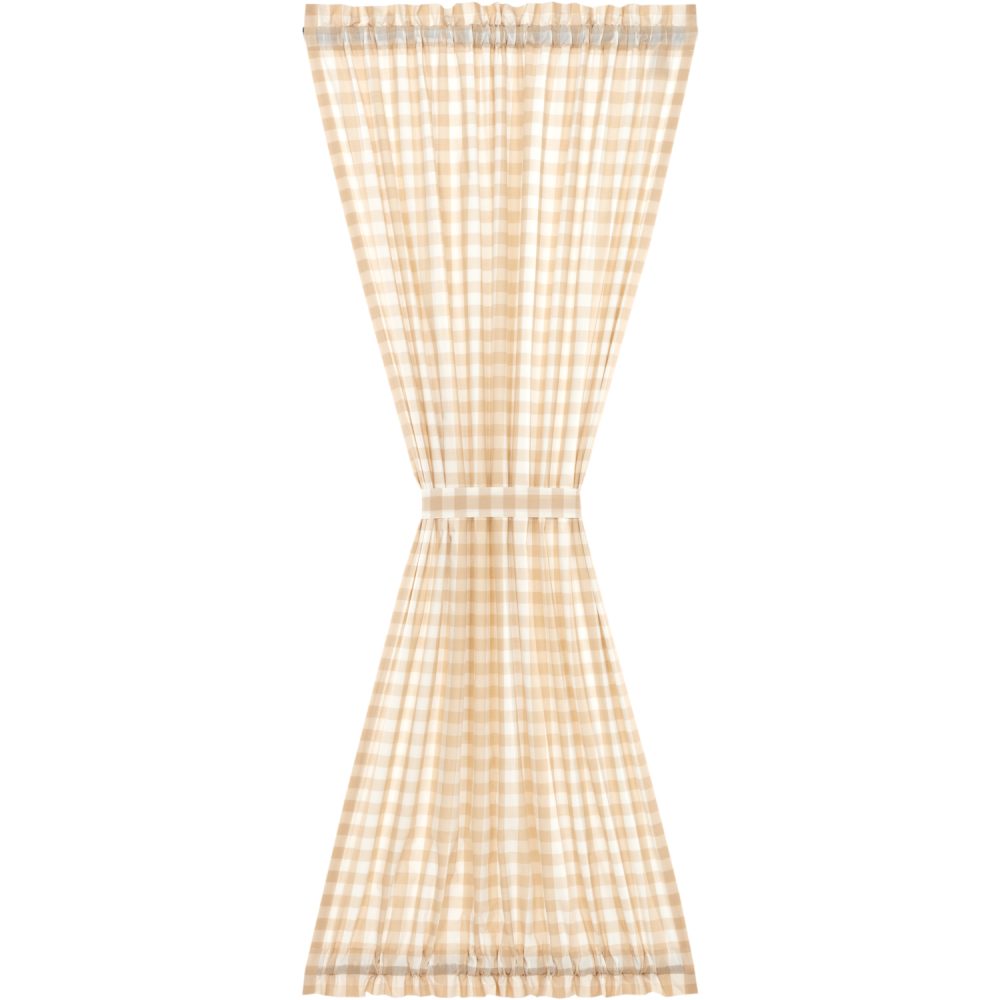 Reduce unwanted sunlight and dress your door in modern farmhouse style with the Annie Buffalo Tan Check Door Panel. Showcasing an eye-catching array of tan and white checks, this lighthearted 72x40 curtain includes a rod pocket for easy hanging and a matching tieback that gives this country door panel a different, refreshed look. Lined with white cotton, our simple panel adds privacy and keeps out the sun's glare while still letting in the daylight.