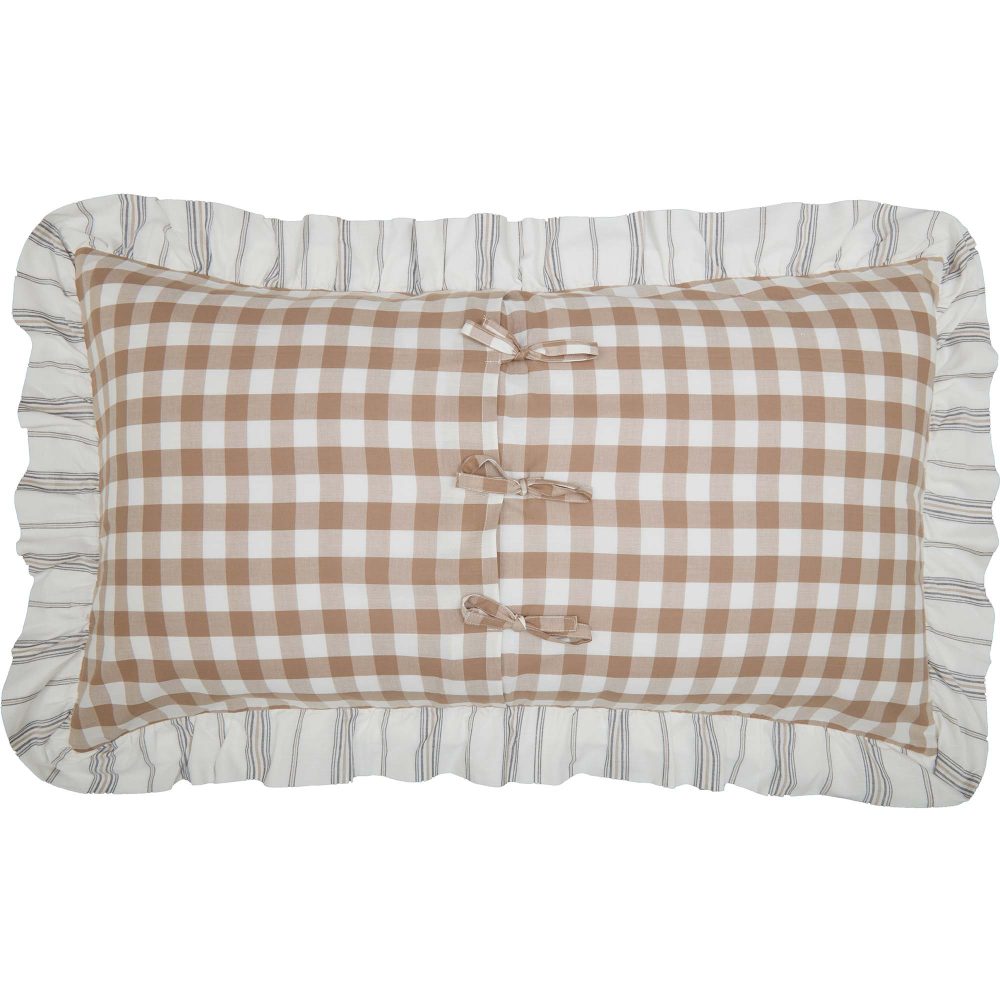 • FARMHOUSE KING SHAM: Includes one 21 by 37 inch bed pillow Sham with ruffled edging and tie closures. Backed with buffalo-check fabric in portabella brown and white.