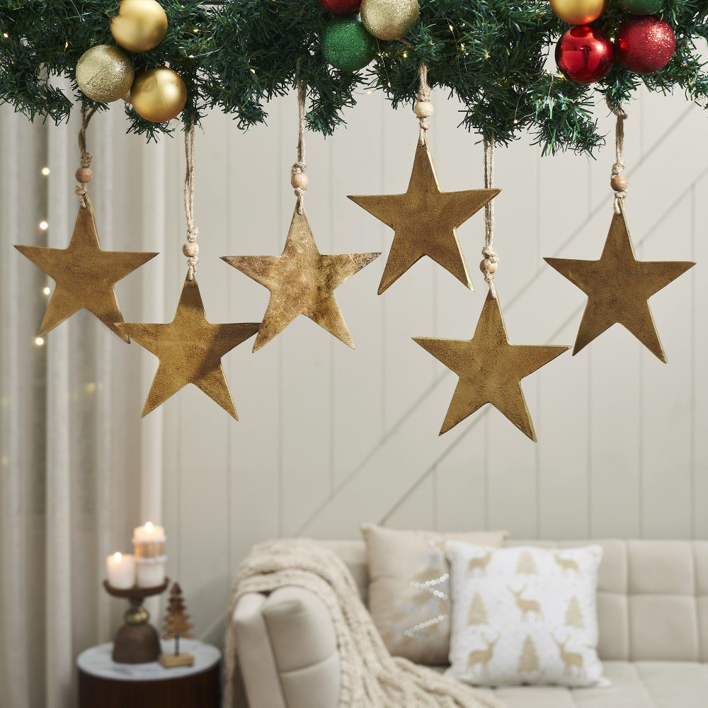 - Classic Star Design: Features antique gold 5-point star ornaments, adding a timeless, rustic touch to your Christmas and winter decor.
