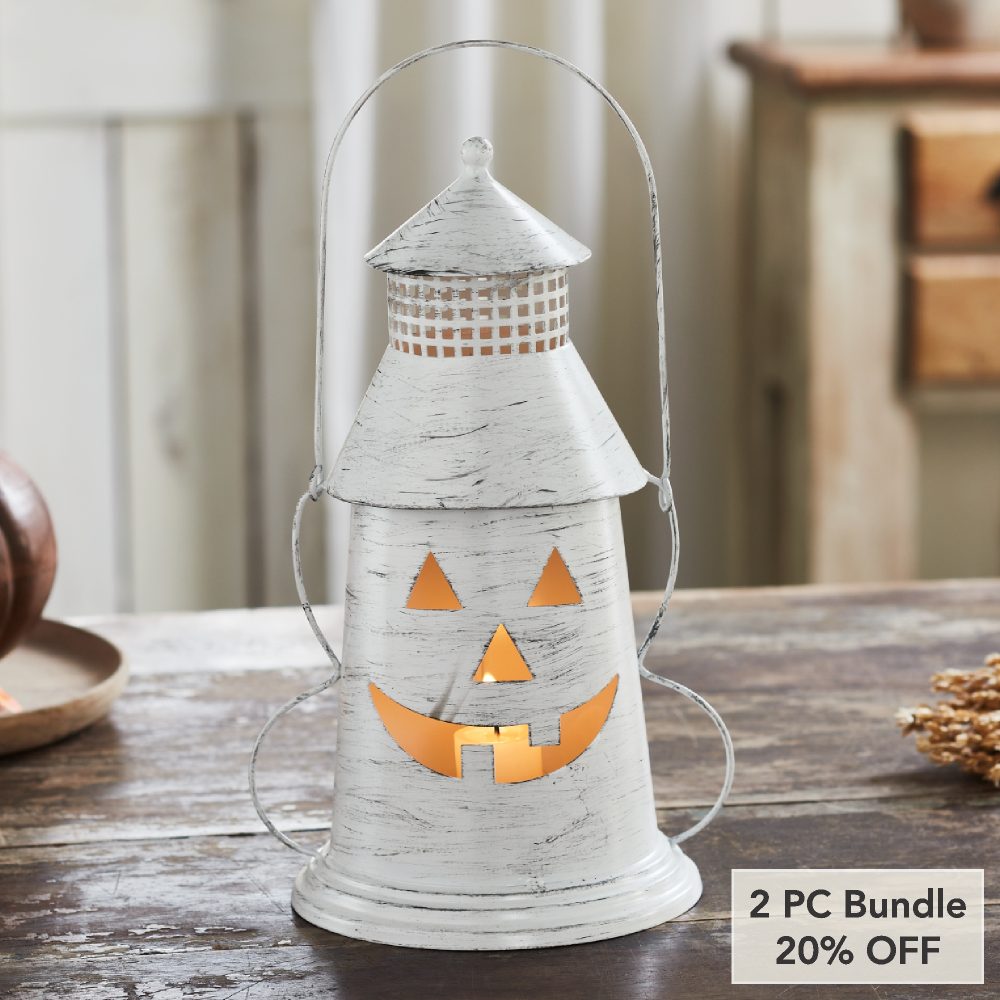 • Sku – 89855 – Antique White Distressed Halloween Decorative Metal Lantern Spooky Tealight Candle Holder Fall Seasonal Home Accent 12x8x6 (2 Packages)