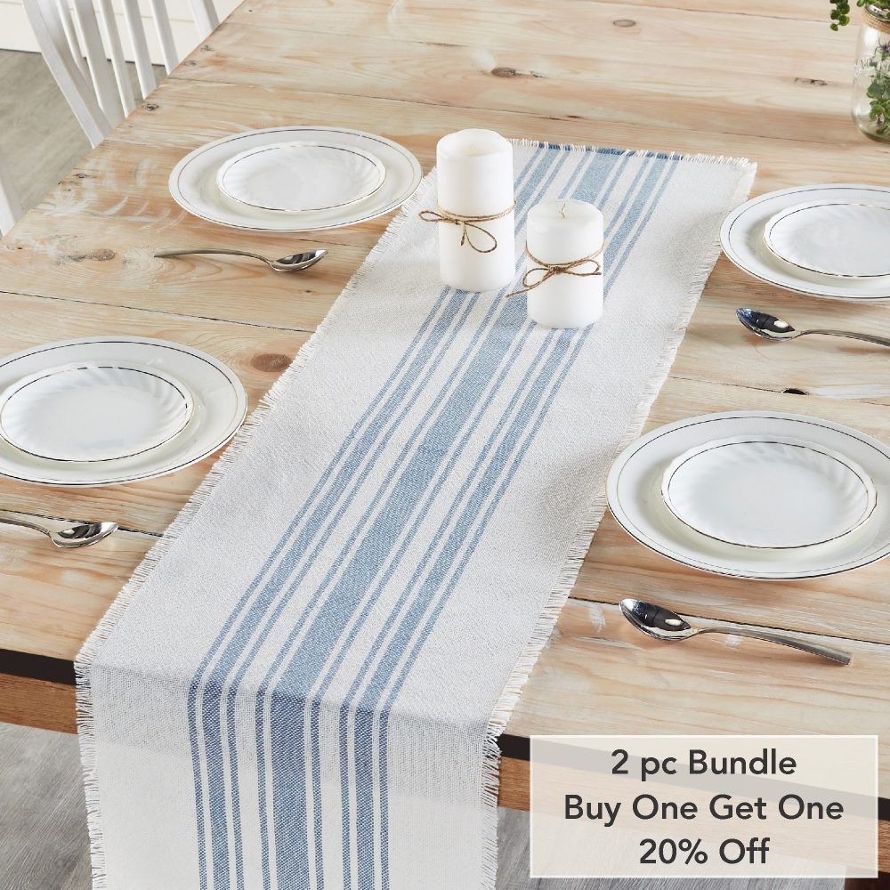 Antique White Stripe Blue Indoor/Outdoor Runner 12×48 (2PC Bundle)