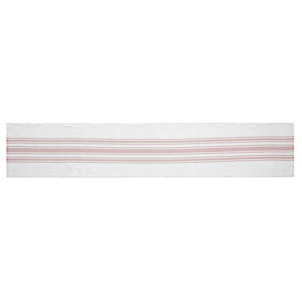 Create a joyful table both inside and out for friends and family to gather round with modern color and a classic design. The Antique White Stripe Coral Table Runner includes one table cover measuring 12x72 inches. The frayed edging and the vintage grain sack style design are given a modern twist with soft coral color and recycle PET material for a water-resistant fabric that can be used on traditional tabletops, or for sprucing up a patio table with farmhouse charm. Complete your tabletop decor with other pieces from the Antique White Stripe Collection by VHC for modern farmhouse style.
