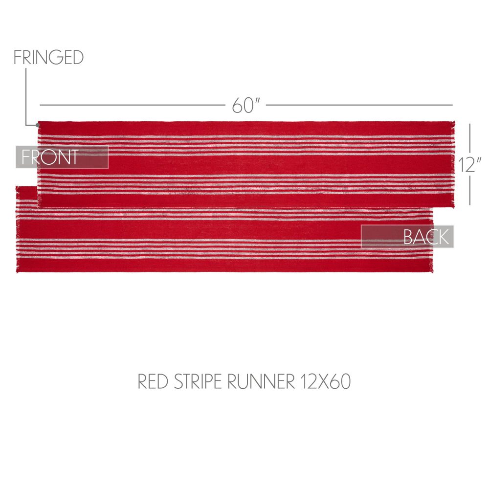 Create a bright and cozy tabletop with the Arendal Red Stripe Runner. The holiday table runner measures 12x60 inches. The design features bold red and soft white for a relaxed Christmas tabletop. The bold red base features two sets of five white horizontal stripes that are perfect for creating a soft, Scandinavian Christmas feel. Soft fringed edging adds an extra pop of texture to complete the look. Coordinates with the Arendal Collection by VHC for simple, classic Christmas style for the home.