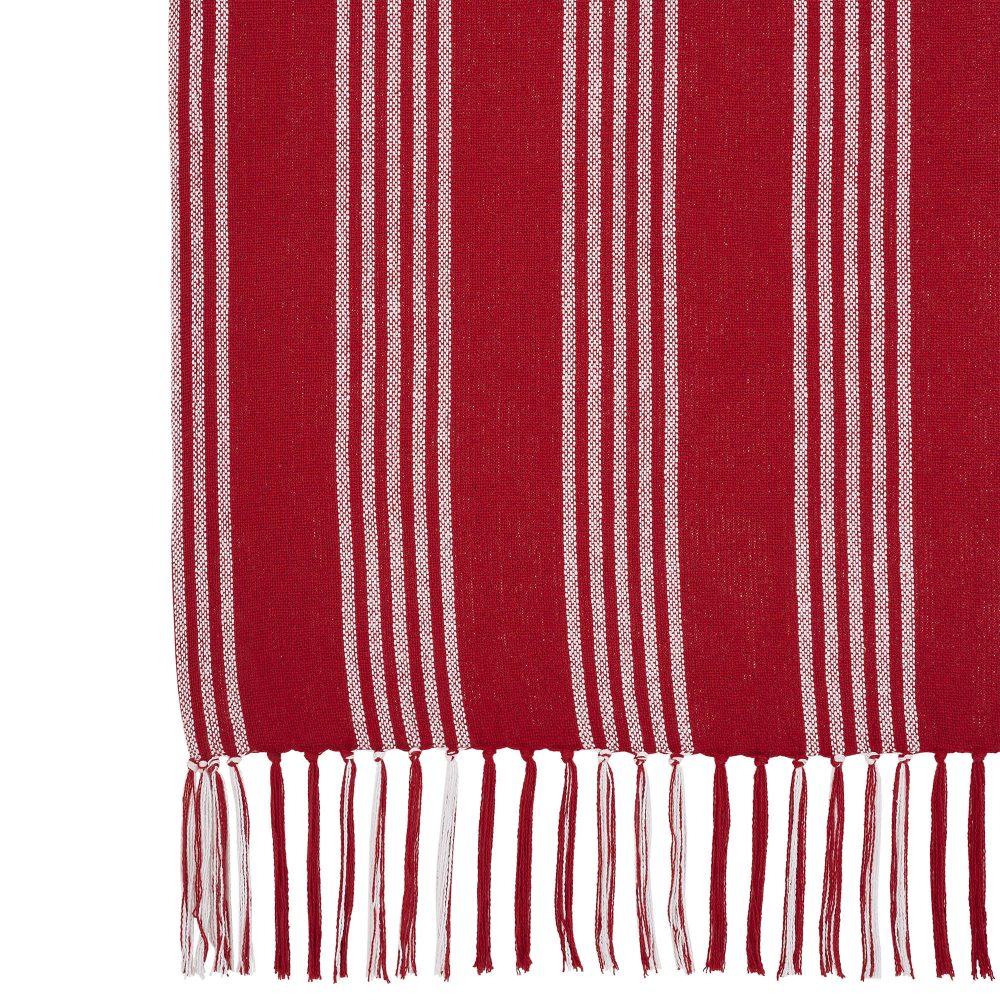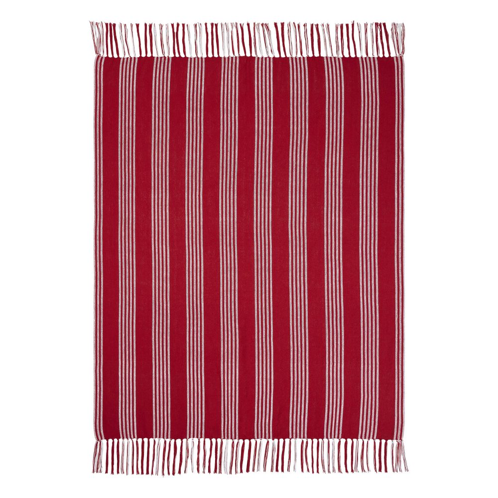 Transform your home into a cozy winter lodge with a timeless striped design. The Arendal Red Stripe Woven Throw measures 50x60 inches. The classic rustic country throw blanket features bold red and soft white striped design. Tasseled edging adds an extra pop of texture. Coordinates with the Arendal Collection by VHC for European farmhouse style for your whole home.