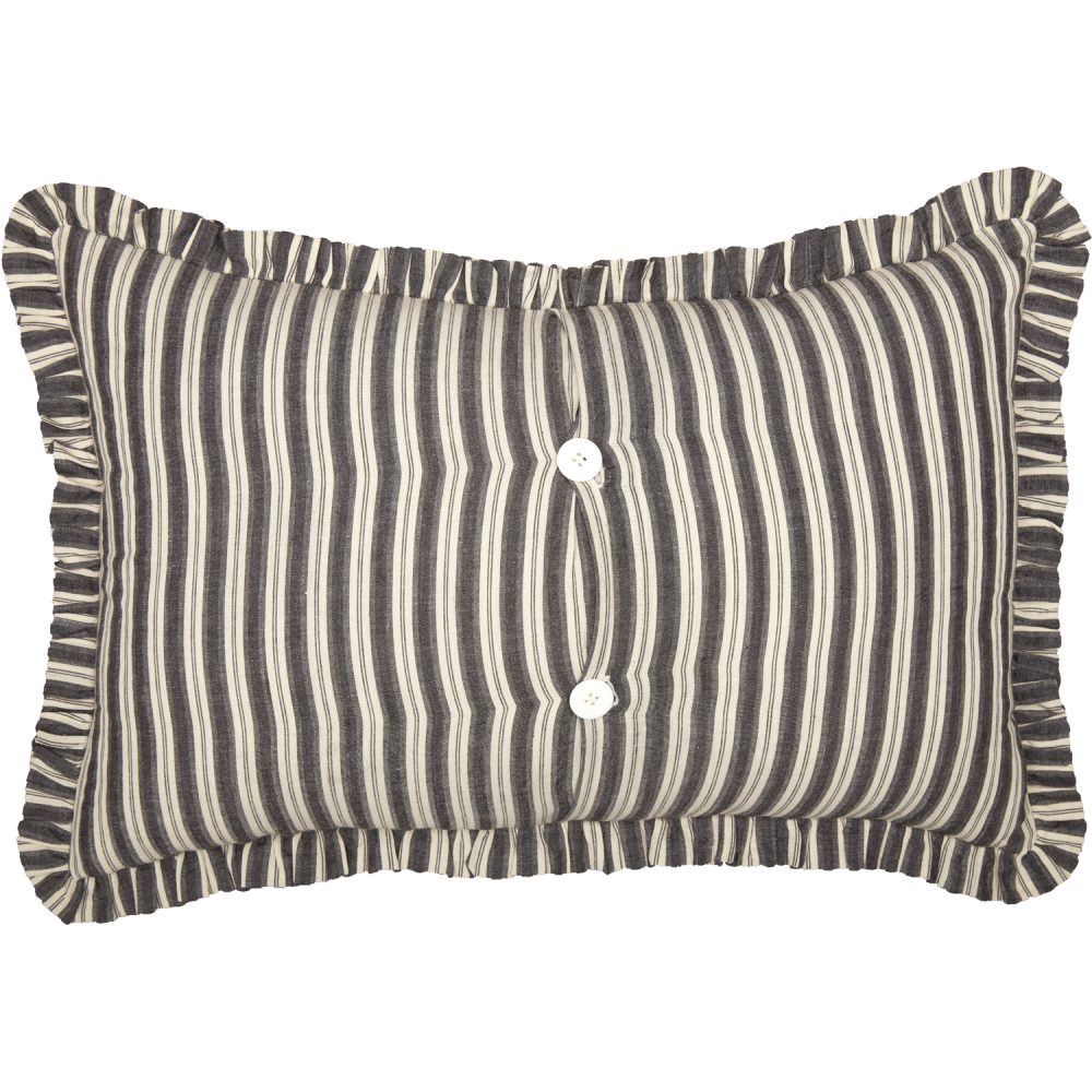 - RUFFLED EDGING: Backed by a striped seersucker fabric in charcoal grey and creme with a matching pleated ruffle edging.