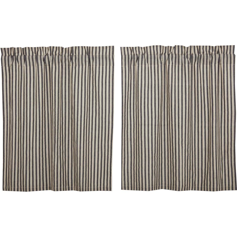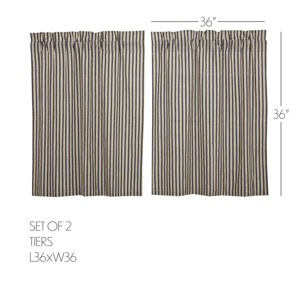 Create the perfectly charming country window of your dreams with these 36 x 36 inch tier-style curtains. Featuring charcoal and vintage white ticking stripes, these short curtains provide just the right balance of privacy and sunshine. Pair with matching valances or prairie swag for a fully decorated look or alone for a simple pop of color and character. Also known as cafe or bistro curtains, these are a particularly good fit for decorating kitchens, laundry rooms, and small bathroom windows.