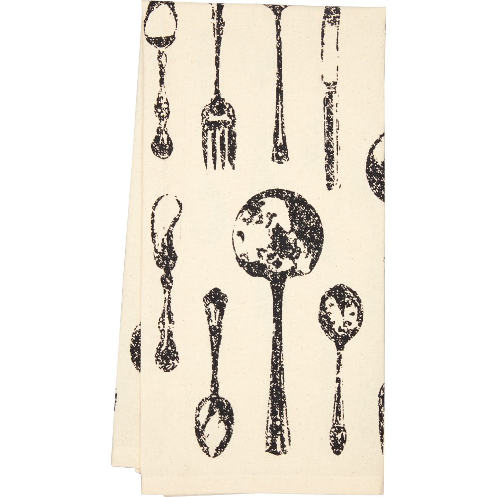 The simple, clean design of the 19x28 Ashmont Vintage Utensil Tea Towel Set updates your country kitchen with a timeless farmhouse look. The first towel in the set is stenciled with the words "Bless This Vintage Kitchen" with a heart-shaped whisk. The other hand towel adds country class to your kitchen with stenciled vintage utensils in a charming layout. These kitchen towels are made from unbleached 100% cotton muslin for an added vintage touch. Their convenient fabric loop gives you an added option when hanging in your kitchen.
