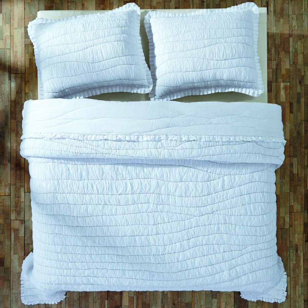 - COASTAL FARMHOUSE DECOR: our Aurora quilt features a beautiful wave-like design mixed with ruched ruffling offering the perfect blend of coastal beach and farmhouse style. Place this heirloom-quality quilt in your cozy farmhouse master suite or dress up your guest bedroom with a casual yet elegant coastal feel. Our Aurora Collection is a unique and versatile fit for many loved and well-known decor styles.