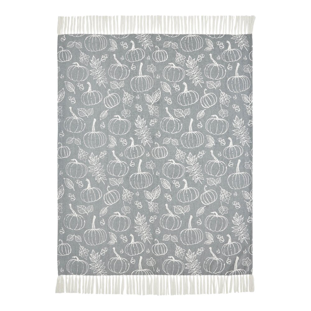 • Sku – 84013 – Autumn Fall Grey Pumpkin Silhouette Plush Throw Blanket 50×60 Cozy Home Decor (2 Packages)