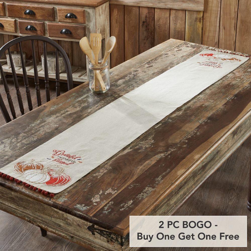 - Sku – 85323 – Autumn Fall Thanksgiving Table Runner Grateful Thankful Blessed Pumpkins Harvest 12 x 72 Inch Farmhouse Seasonal Home Decor (2 Packages)