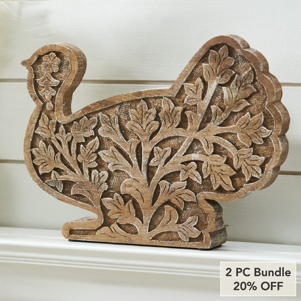 - Sku – 89785 – Autumn Harvest Carved Wooden Turkey Figurine, Fall Leaf Tabletop Decor, Thanksgiving Accent, 10x14x2 (2 Packages)