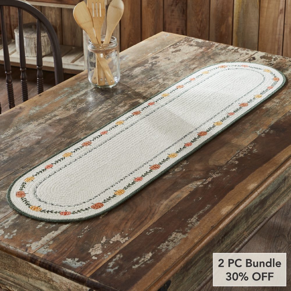 - Sku – 85516 – Autumn Harvest Pumpkin Stencil Table Runner 12×48 Farmhouse Fall Kitchen Dining Decor (2 Packages)