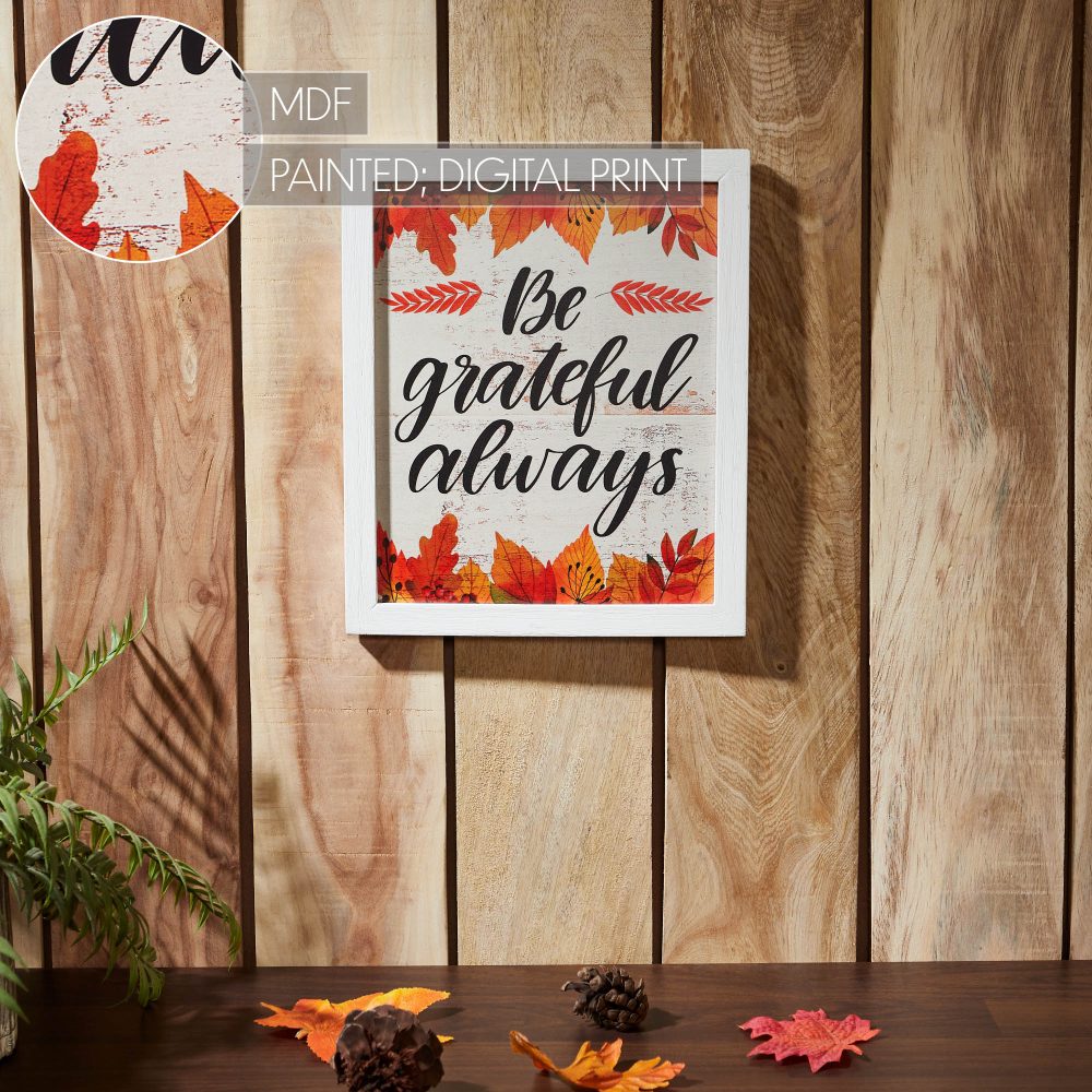 - INFUSE HEARTFELT WARMTH: Transform your home with this 12×10″ distressed wall sign, seamlessly blending rustic farmhouse charm, vibrant autumn leaves, and the persistent, uplifting “Be Grateful Always” message for enduring peace.