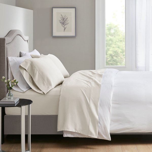 The Beautyrest 700 Thread Count sheet set provides a clean and comfortable update to your bed. This deep pocket sheet set is made with a triple blend weave of cotton, lyocell, and polyester for a soft look and feel. The sheets go through a very light brushing process that gives them an incredible soft feel against your skin. If you’ve wanted to try sateen sheets in the past, but have been put off by their crisp hand then this sheet is definitely for you. These sheets are also OEKO-TEX certified, meaning it does not contain any harmful substances or chemicals, ensuring quality comfort and wellness.