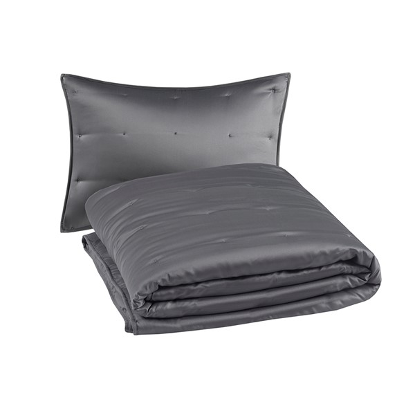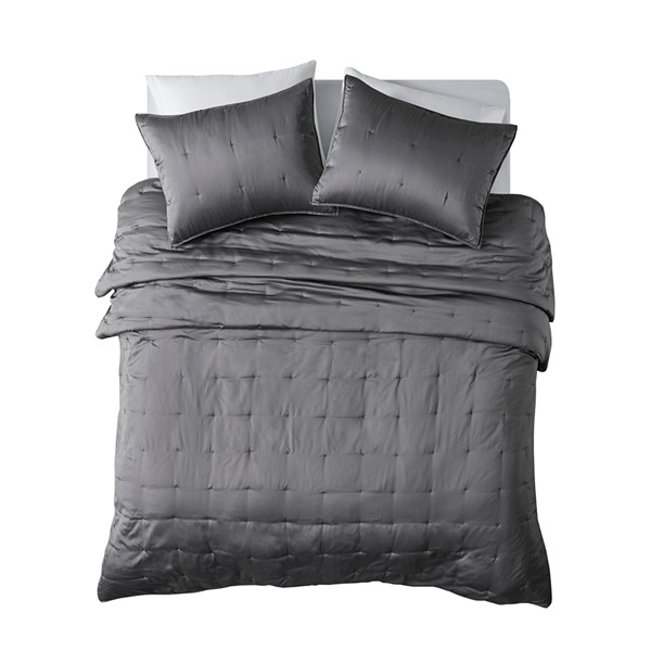 * Elegant, soft grey poly charmeuse coverlet set