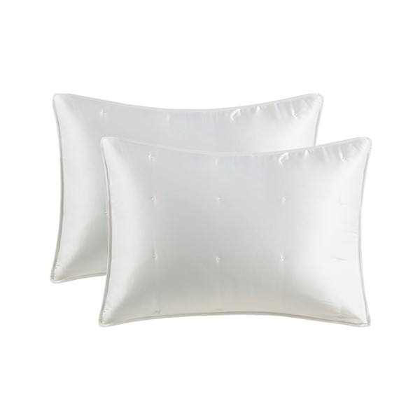 Add an elegant touch to your bedroom decor with the Beautyrest Ames 3 Piece Charmeuse Coverlet Set. The ivory charmeuse coverlet is soft to touch and uses a quilted embroidered dot pattern to secure the hypoallergenic polyester filling. Matching shams pair beautifully with the coverlet and complete the look to this bedding set. Machine washable for easy care, this charmeuse coverlet can be used alone or layered with other bedding for extra warmth.