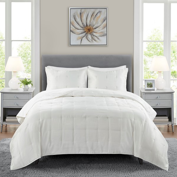 Add an elegant touch to your bedroom decor with the Beautyrest Ames 3 Piece Charmeuse Coverlet Set. The ivory charmeuse coverlet is soft to touch and uses a quilted embroidered dot pattern to secure the hypoallergenic polyester filling. Matching shams pair beautifully with the coverlet and complete the look to this bedding set. Machine washable for easy care, this charmeuse coverlet can be used alone or layered with other bedding for extra warmth.