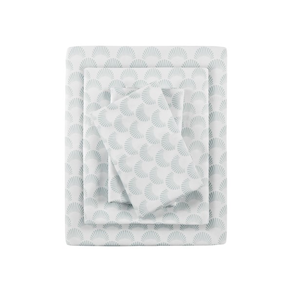 Comforter and sham: microfiber print (moisture-wicking treatment) face, microfiber solid back,Comforter fill: poly fill; Channel Quilting. Sheets : microfiber print (moisture-wicking treatment). Pillow: microfiber cover with poly fill