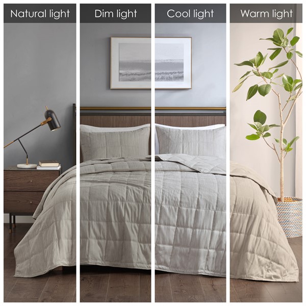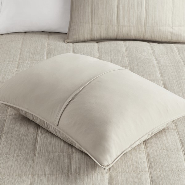 Add the Beautyrest Guthrie Quilt to your bed to bring an extra layer of coziness and comfort to your bedroom. Featuring a chic striated natural fabric for a chambray-look, this oversized quilt reverses to a soft microfiber that adds softness. Matching shams complete the casual look and the down alternative filling provides extra warmth and comfort. Perfect by itself or layered with other bedding like a comforter or duvet, this quilt offers a stylish addition to your bedroom decor.