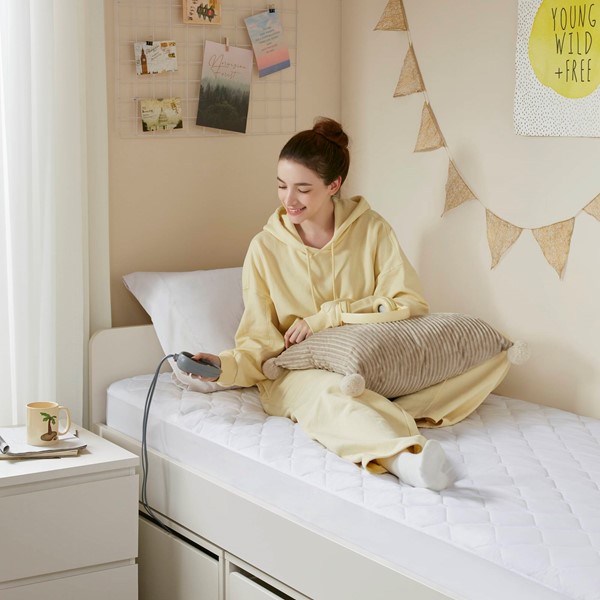 Crafted for exceptional comfort, the pad features soft, flexible heating wires and a quilted top that provide even warmth and cozy support. The fitted skirt accommodates up to 18″ mattresses for a seamless fit. Practical and user-friendly, it is machine washable and includes a 10-hour auto shut-off for safety, along with 5 customizable temperature settings. Twin, Twin XL, and Full sizes come with one controller, while Queen, King, and Cal King sizes include two controllers. Backed by a manufacturer’s 5-year warranty, this mattress pad combines innovation, comfort, and reliability for an elevated sleep experience.