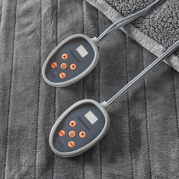Sleep in ease in our Beautyrest Heated blanket with Secure Comfort Technology, which is designed to virtually eliminate ElectroMagnetic Field emissons. The soft flexible wires and ultra-soft microlight plush fabric ensures your comfort. It reverses to a soft berber that adds extra warmth and loft. The heated blanket features 10 hour auto shut off and has 20 different temperature settings so you can customize the precise temperature you want. It’s also machine washable for easy care and OEKO-TEX certified, meaning it does not contain any harmful substances or chemicals to ensure quality comfort and wellness. Twin and Full size have one controller, Queen and King size have 2 controllers. Includes manufacturer’s 5-year warranty.