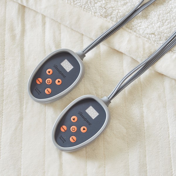 Sleep in ease in our Beautyrest Heated blanket with Secure Comfort Technology, which is designed to virtually eliminate ElectroMagnetic Field emissons. The soft flexible wires and ultra-soft microlight plush fabric ensures your comfort. It reverses to a soft berber that adds extra warmth and loft. The heated blanket features 10 hour auto shut off and has 20 different temperature settings so you can customize the precise temperature you want. It’s also machine washable for easy care and OEKO-TEX certified, meaning it does not contain any harmful substances or chemicals to ensure quality comfort and wellness. Twin and Full size have one controller, Queen and King size have 2 controllers. Includes manufacturer’s 5-year warranty.