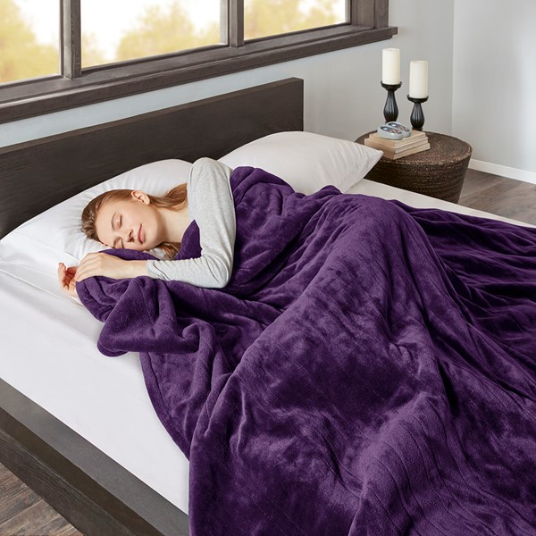 This electric blanket in queen size comes with dual controls, a 9-hour sleep timer, and a 20-setting heat selector. It can be connected to a smart device for voice control and is incredibly cozy and warm in a deep purple color, making it perfect for cold nights.