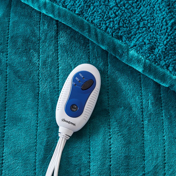 Beautyrest Heated Microlight to Berber Throw in Teal, 60×70" BR54-1926