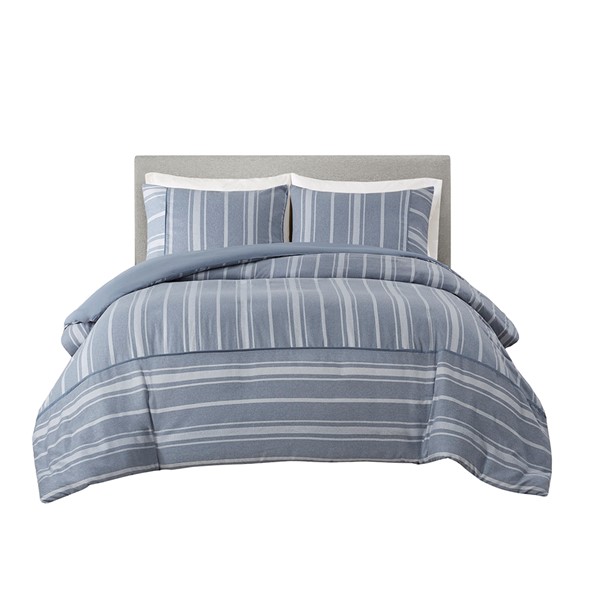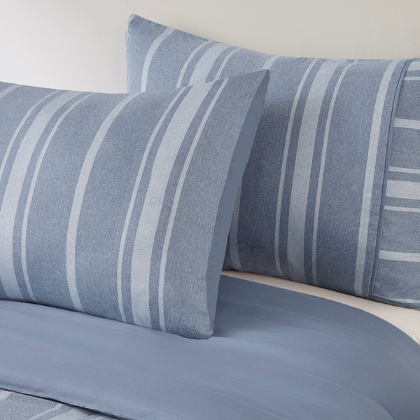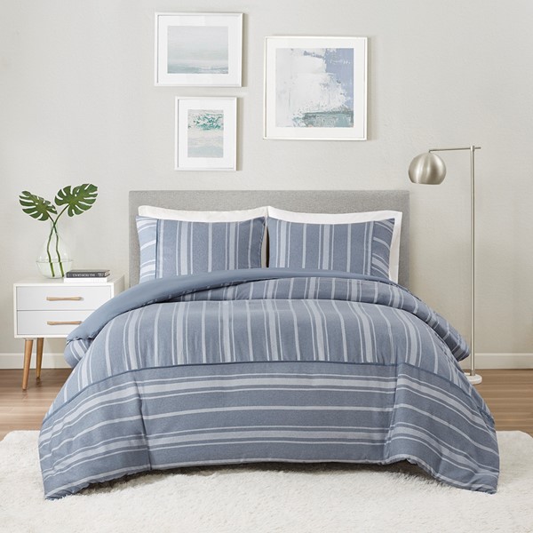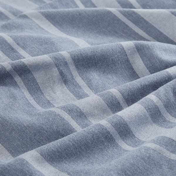 A fresh take on a classic design, the Beautyrest Kent duvet cover set introduces a casual look that’s always in style. The blue herringbone pattern is paired with a stripe design in a lighter shade of blue for a practical, yet charming allure. Pleated details add a dimensional element to the duvet cover, elevating the design. Also included are matching shams that pair handsomely with the striped duvet cover, completing the bedding set.