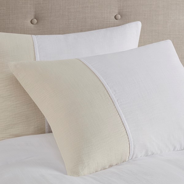 Refresh your bedroom with the subtle beauty of the Beautyrest Miro gauze comforter set. This lightweight comforter features a natural two-tone pieced design that embraces a more casual look with a touch of elegance. Matching shams repeat the modest style of the comforter to complete the oversized bedding set and give your room a chic neutral update that mixes well with a variety of styles.