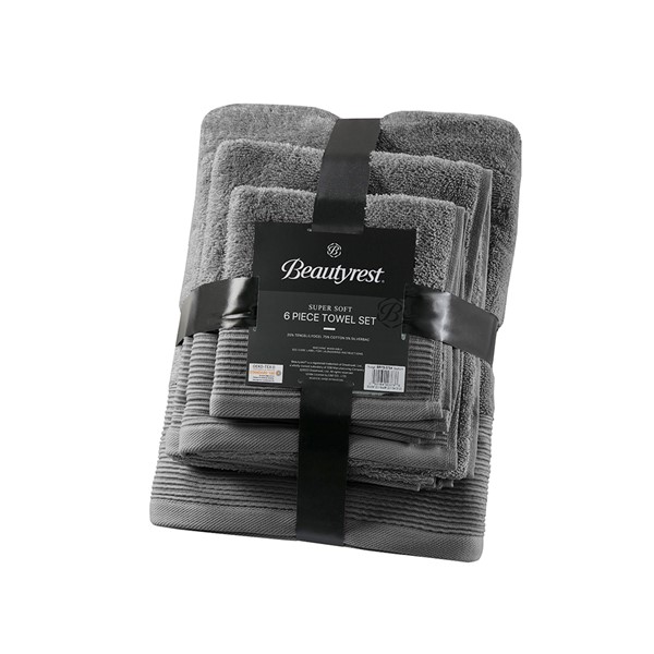 1 review for Beautyrest Nuage Cotton Tencel Blend Antimicrobial 6 Piece Towel Set in Charcoal, 6-Piece BR73-3753