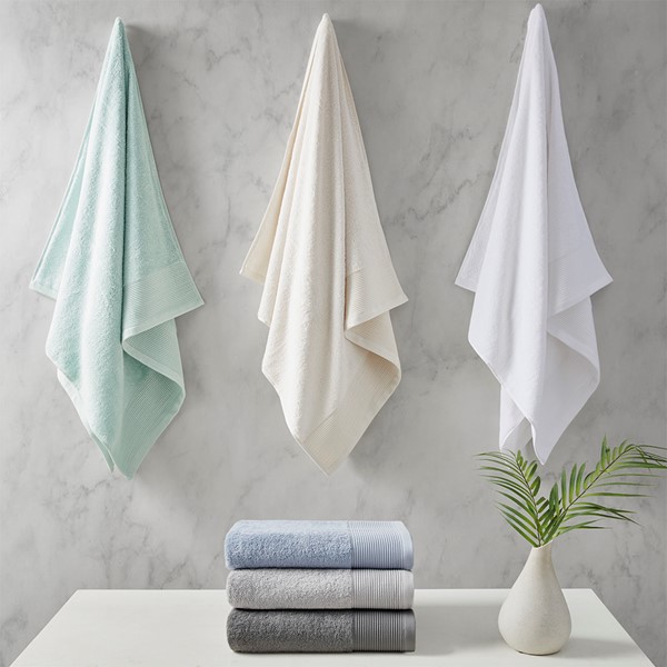 Refresh your bathroom with the luxurious and eco-friendly Beautyrest Nuage Tri Blend Antimicrobial 6 Piece Towel Set. This 600gsm premium quality towel set has a natural sheen and a soft, plush touch that is highly absorbent and creates a sumptuous look; while a ribbed cuffed hem provides a textural element for an updated look. The Tencel Lyocell cotton fibers are derived from sustainable wood sources offering an eco-friendly option, while silver infusion provides permanent antimicrobial for odor control and built-in freshness; effective against 99.9% of pathogens after 50+ washes. This cotton blend towel set is also OEKO-TEX certified, meaning it does not contain any harmful substances or chemicals to ensure quality comfort and wellness. Set includes: 2 bath (30"x56"), 2 hand (16"x28"), and 2 wash (13"x13") towels.